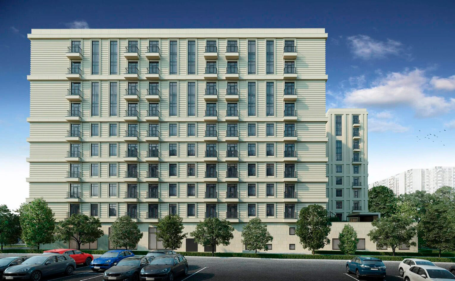 Апарт-комплекс «Королева, 13» включает в себя 1 корпус высотой в 10 этажей. Здание возведено по долговечной кирпично-монолитной технологии. Стены облицованы современным навесным вентилируемым фасадом.