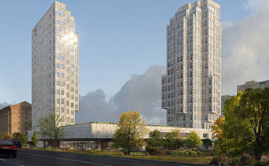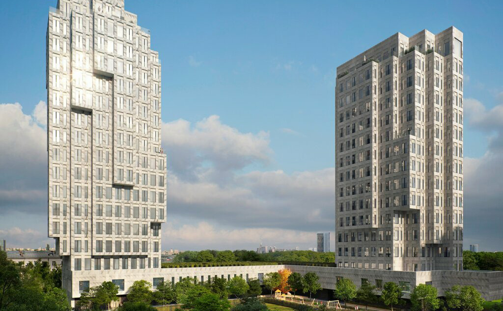 Проект «Eleven» представляет собой 2 башни высотой 16 и 17 этажей, объединенных стилобатом в 2 этажа. Фасады облицованы панелями цвета средиземноморского известняка и черным немецким клинкерным кирпичом. В входной группе выполнена дизайнерская отделка от Роберто Санторо.