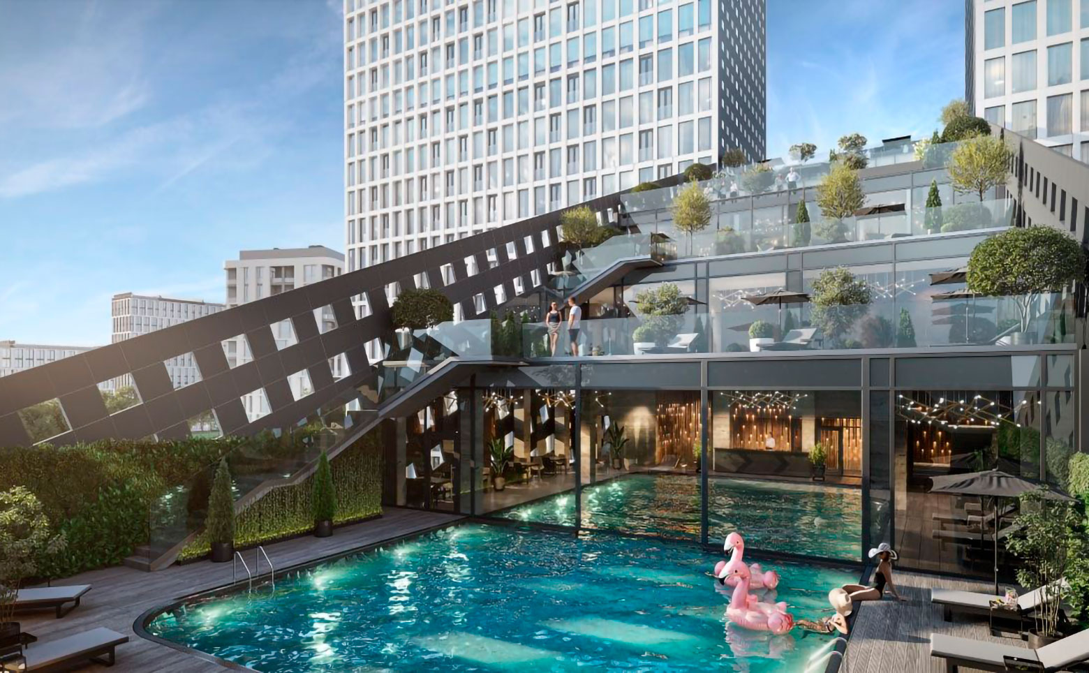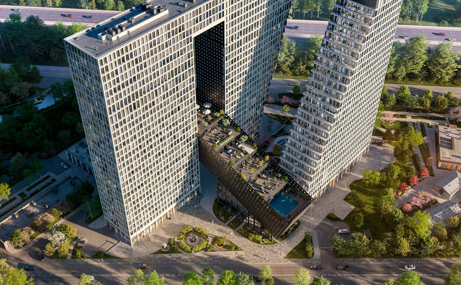 Территория комплекса благоустроена — имеется СПА-комплекс с открытым бассейном, озелененные зоны для отдыха. Здание оборудовано системой «Умный Дом», для автовладельцев предусмотрен подземный паркинг.