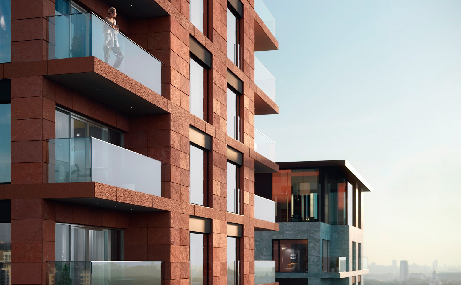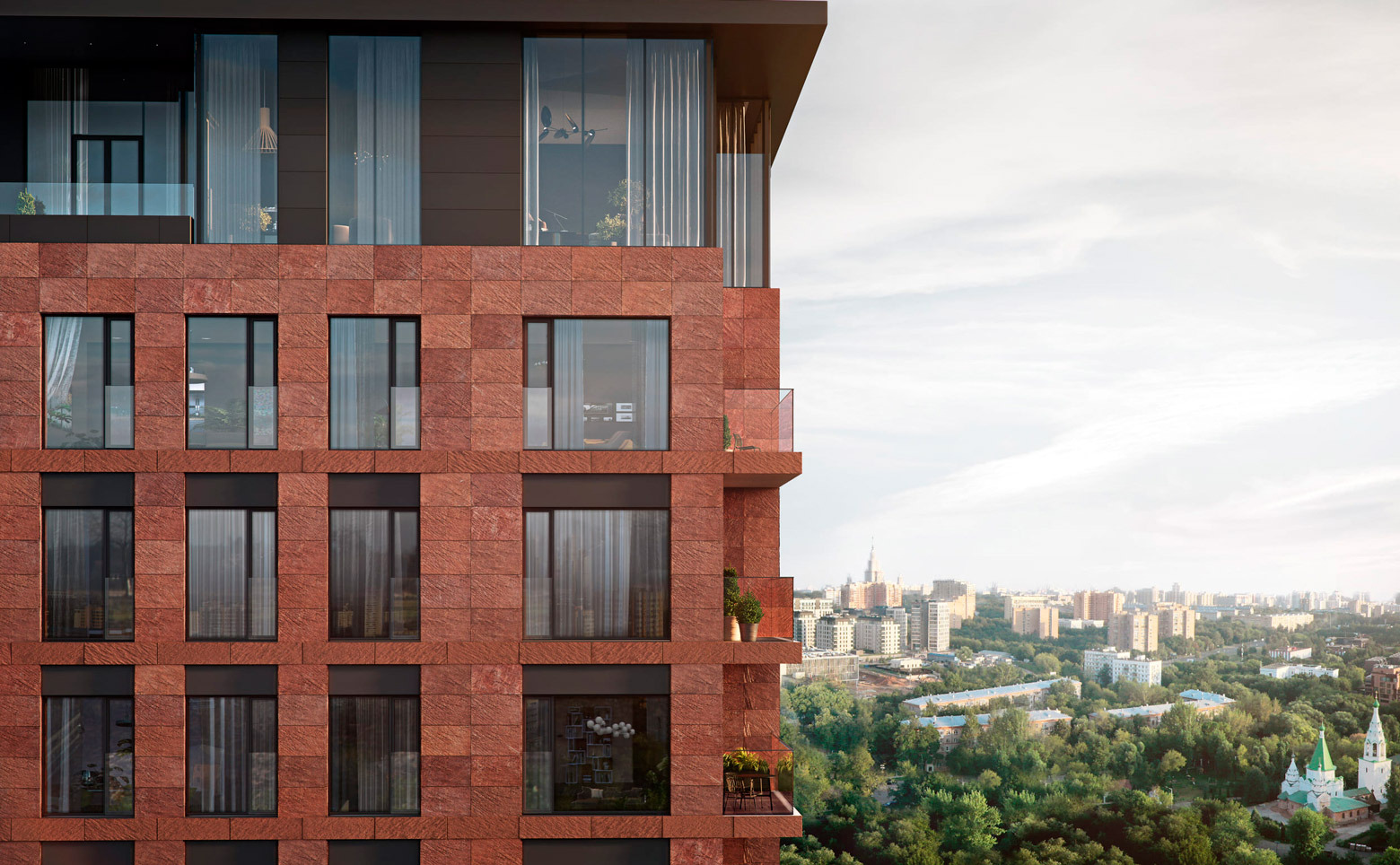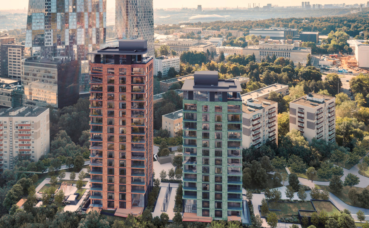 Клубный дом «Woods» — это 2 корпуса высотой 14 и 18 этажей. Здания возведены по монолитной технологии. Один корпус облицован терракотовым песчаником, а второй — зеленым гранитом. Во всех входных группах выполнена дизайнерская отделка и установлены современные лифты.