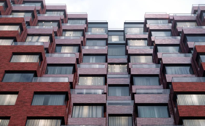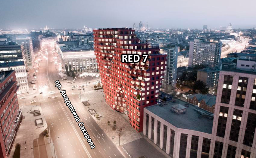 Комплекс апартаментов «RED7» представляет собой двухсекционный кирпично-монолитный дом высотой 19 этажей, внешний облик которого выполнен по индивидуальному архитектурному проекту голландской студии MVRDV. Для наружной облицовки фасадов здания используется долговечный и эстетически привлекательный декоративный кирпич в сочетании с клинкерной плиткой.