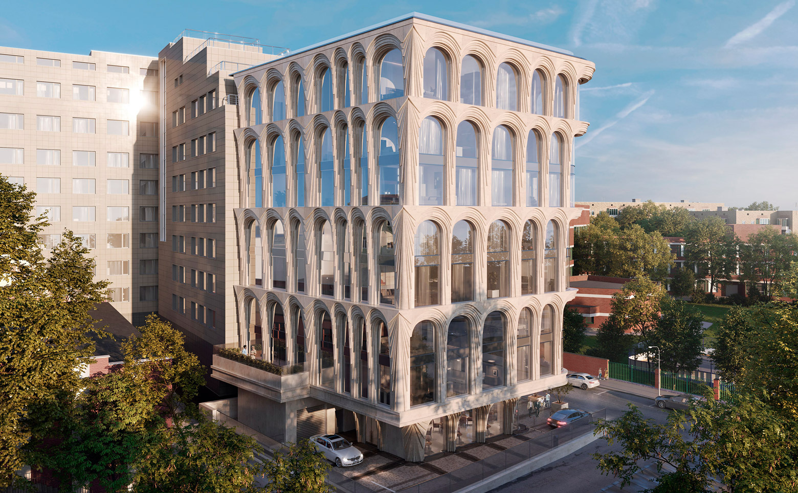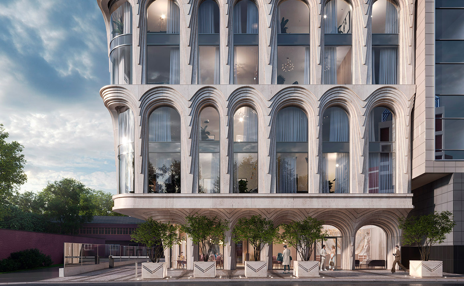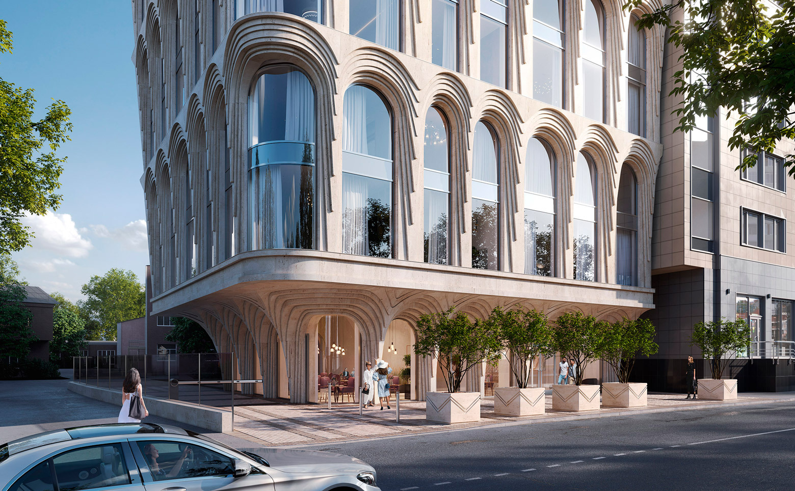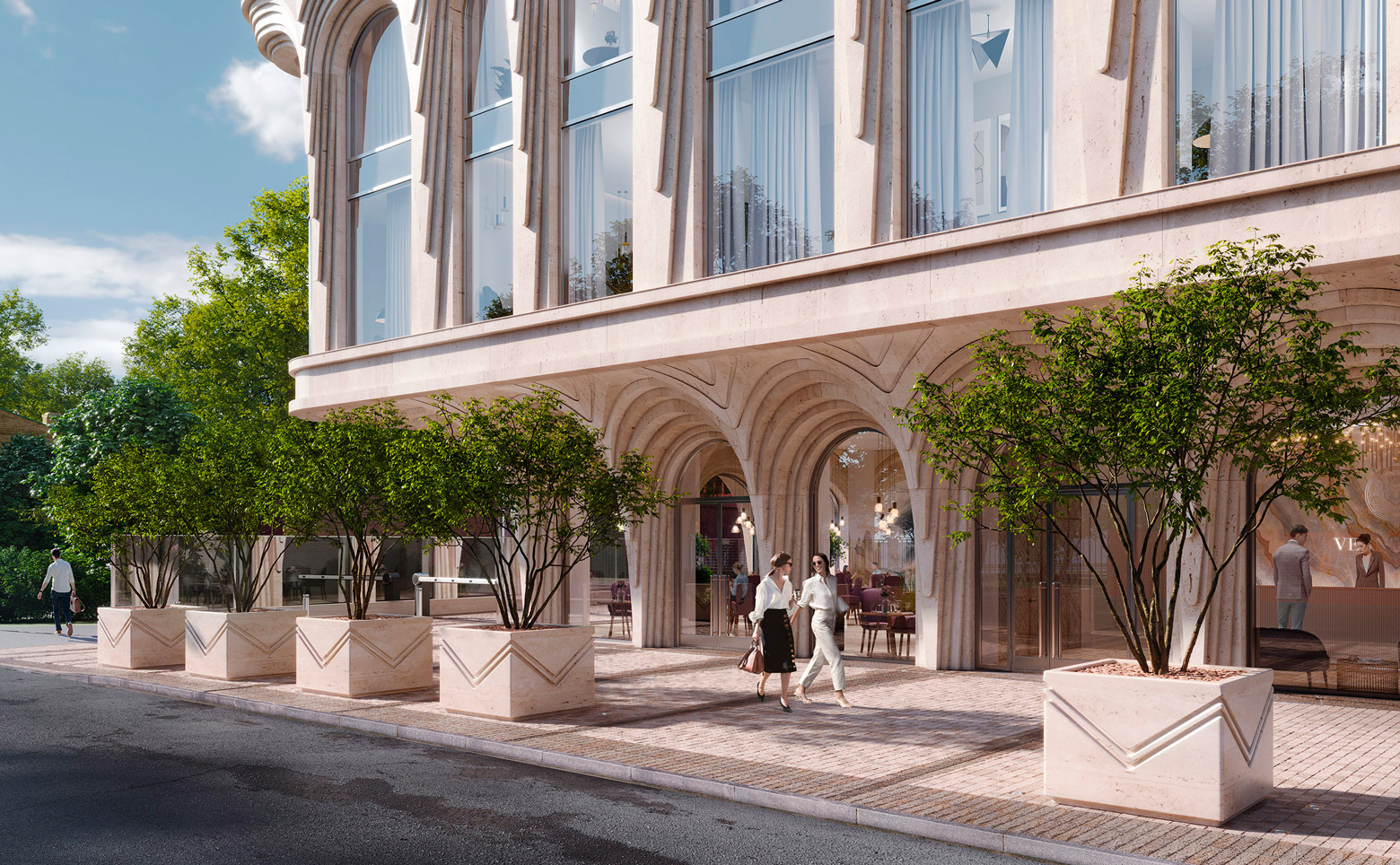 Клубный дом «Vernissage» — это 1 монолитный корпус высотой в 8 этажей. Особенностью архитектурного образа дома являются уникальные фасады в стиле ар-деко с большой площадью остекления и изящные интерьеры, созданные в архитектурном бюро Катерины Грень (GREN).