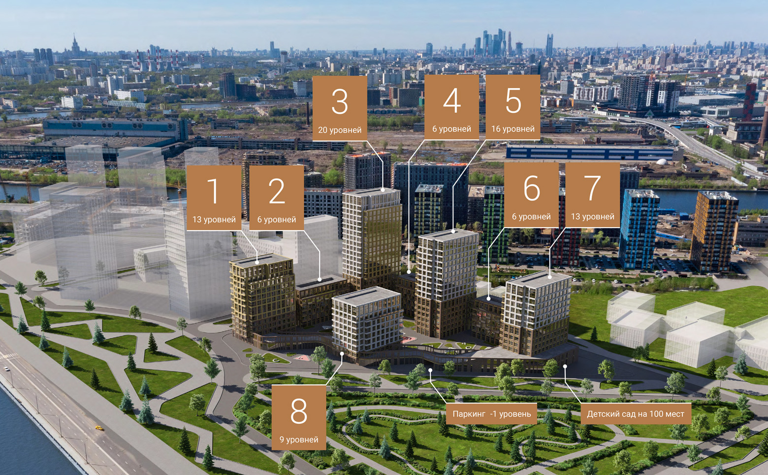 ЖК «WOW» — это монолитные дома разной этажности с выходом на набережную и парк. В оформлении стен используется современный навесной вентилируемый керамогранитный фасад. В проекте предусмотрены дизайнерское гранд-лобби с камином, комната доставки, кофейня, коворкинг и консьерж-сервис.